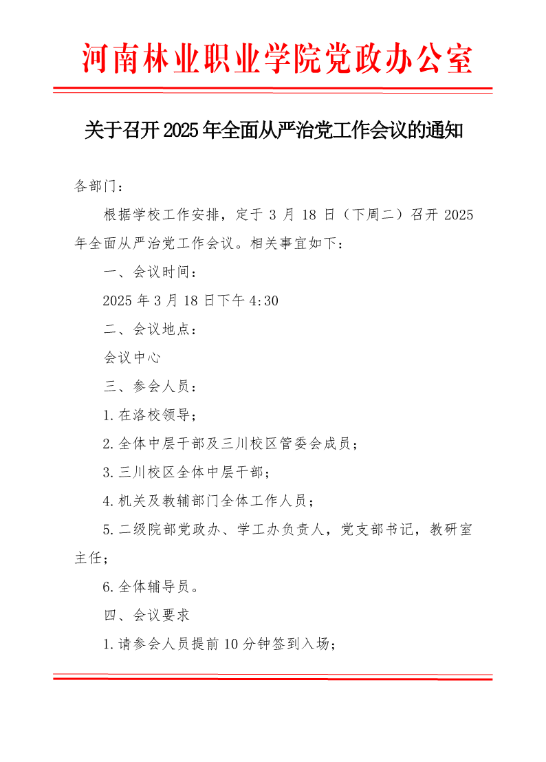 2025年全面从严治党工作会议通知
