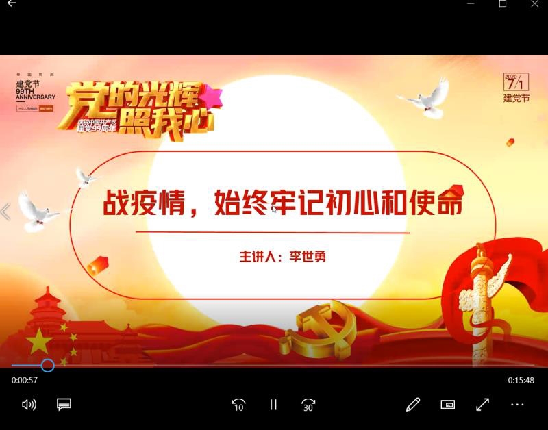 为庆祝中国共产党成立99周年,按照学校工作安排,7月1日,基础部党支部和思政党支部开展了以“牢记初心使命、争当出彩先锋”为主题的支部党日系列活动。受疫情影响,本次主题党日活动通过钉钉视频会议的形式进行。