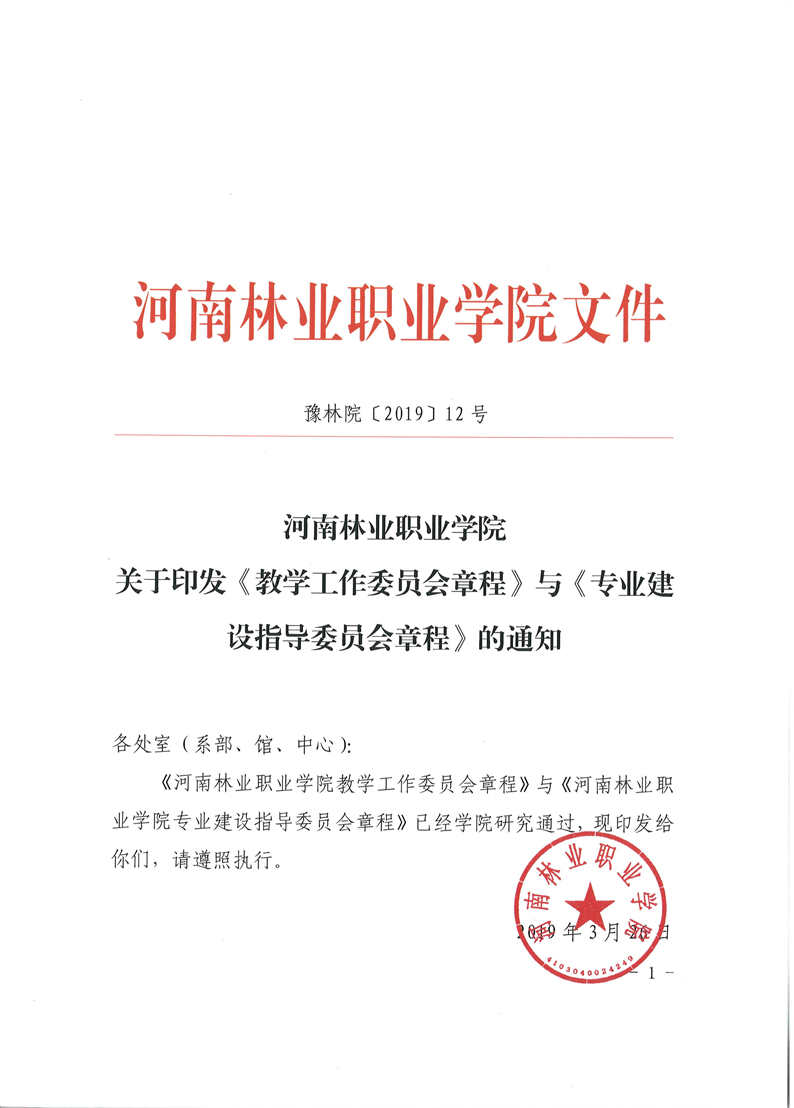 河南林业职业学院专业建设委员会章程