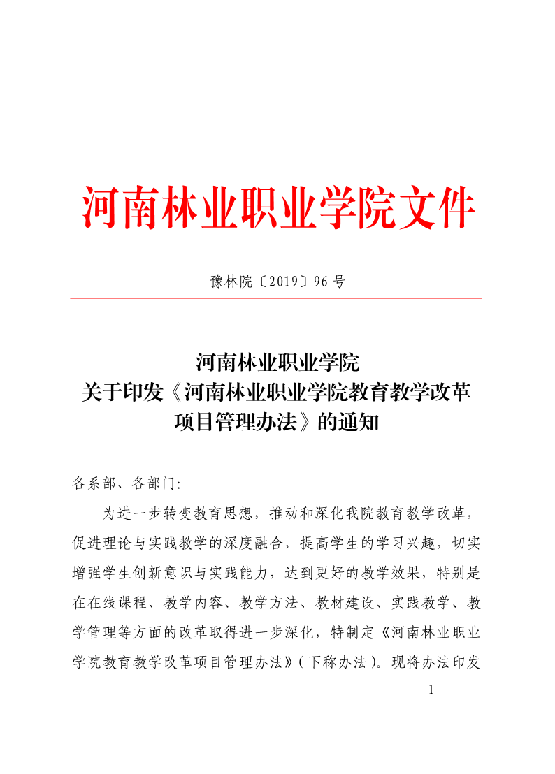 河南林业职业学院教育教学改革项目管理办法