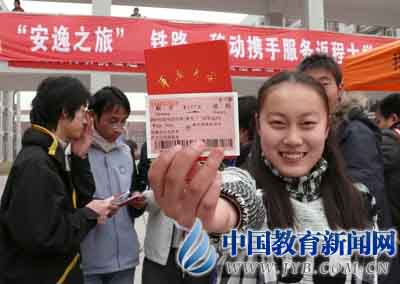 实习生 李树生 本报记者 杨晨光 拿到回家和返程的车票了!”1月19日,中国人民大学新闻学院学生黄艳菲向记者扬了扬手中粉红色的车票,喜悦之情溢于言表。 像黄艳菲这样幸运的学生今年并不在少数。据了解,中国人民大学今年领回的学生票共7800多张,其中就包括2000多张返程票,2000多学子因此而受益。截至目前,北京铁路局的数据显示,今年北京共有5万名大学生购买了返程票。 对于铁路部门而言,每一年的春运就是一次大规模的迁徙运动。为确保学生能回家安度春节,今年,铁道部要求各铁路局提前做好学生客流调查工作,做到学生运输预案早动手,学生用票计划早安排,学生专列早下令、早开行,同时加大临时旅客列车的发车力度。此外,铁道部还和教育部、公安部等紧密结合,一起解决大学生买票难的问题,使大学生中盛传的“春劫”变成名副其实的“春节”。