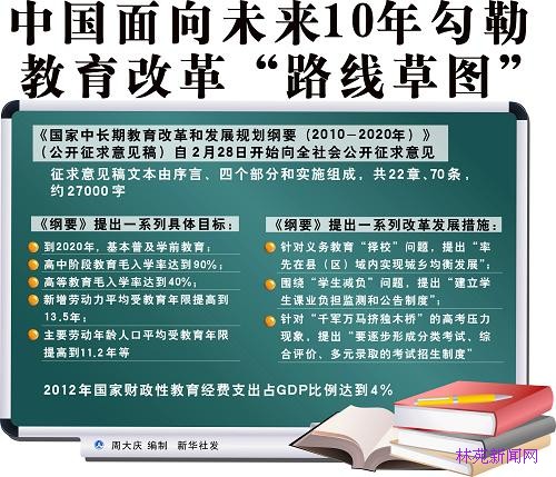《国家中长期教育改革和发展规划纲要(2010-2020年)》,从我国现代化建设的总体战略出发,绘制着今后10年教育改革和发展的宏伟蓝图。