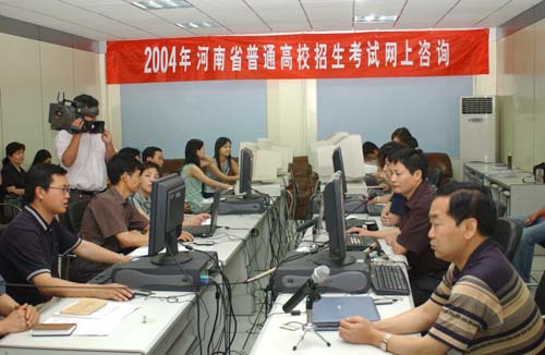 今年我省报考普通高校的考生近60万人,在豫招生的院校和单位1400多个,招生规模大,涉及人数多。为贯彻落实“办人民满意高考”的指导思想,做好2004年招生宣传工作,充分满足广大考生和家长高考招生咨询的要求,避免大规模现场咨询活动引发公共安全问题,同时也避免非法招生中介和招生诈骗者在人群聚集的咨询现场混水摸鱼,我省组织参加了教育部高校学生司主办、全国各省招生部门和高校参加的“2004年普通高校招生网上咨询周”活动。