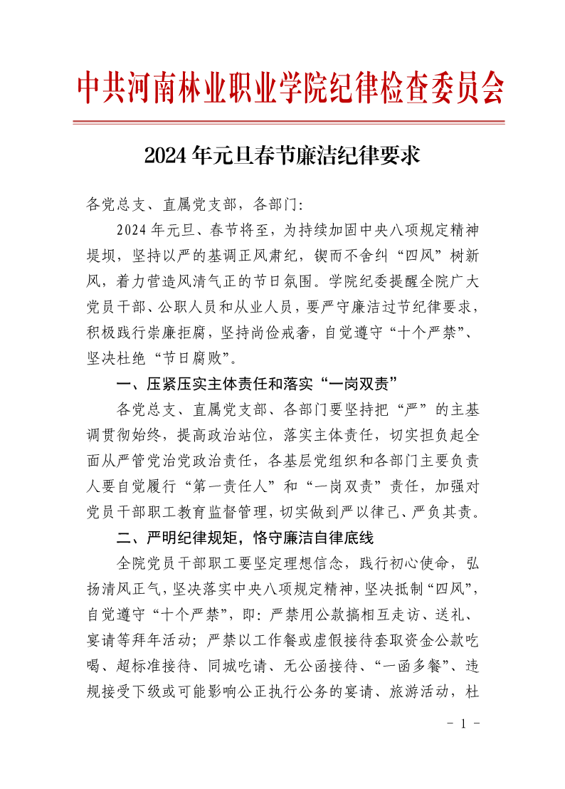2024年元旦春节廉洁纪律要求
