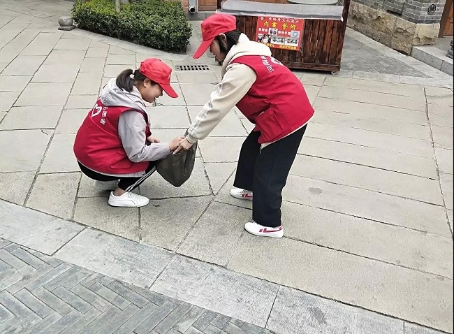 在3月21日下午,园林工程1831班在经过团支书与洛邑古城工作人员的协商之后,同学们不顾天气的阴冷,一行人穿上了志愿者服装,带上了小红帽,走进了洛邑古城,开展志愿活动,每个人都自带了一个垃圾袋,捡起地砖,角隅处的烟头和行人随手丢弃的垃圾,并让垃圾回到了它该去的地方。看着干净的地面,疲惫也在一瞬间烟消云散,留下的都是一张张开心的笑脸。
