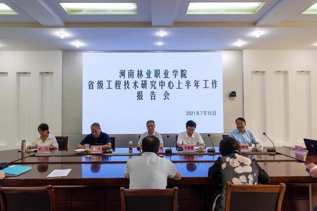 7月15日上午,河南林业职业学院召开省级工程技术研究中心上半年工作报告会。院长宋宏伟,党委副书记王新建、副院长路买林、刘耀玺及学术委员会成员听取了学院四个省级工程技术研究中心的上半年工作汇报。会议由王新建主持。